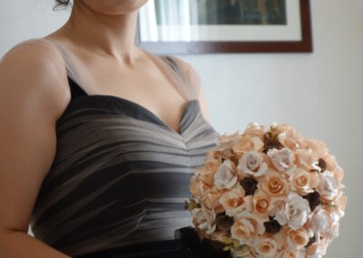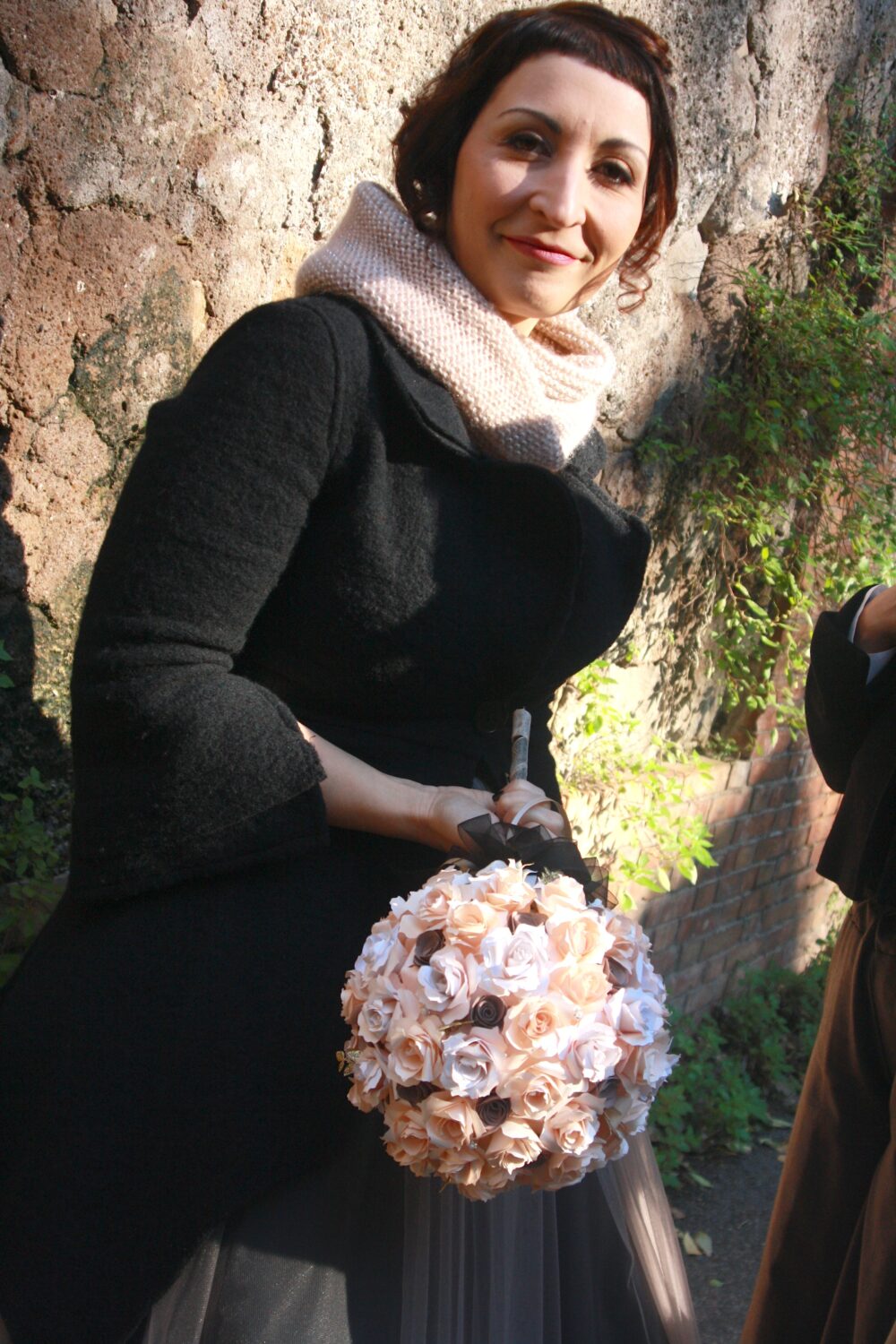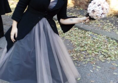Lavorare con Alessandra è stata un’esperienza incredibile, per molti versi era la sposa che stavo aspettando. Creativa, anticonformista, coraggiosa ma allo stesso tempo sinceramente disposta ad ascoltare consigli e soluzioni. E poi finalmente un abito da sposa a con il NERO come colore di base, anche se alleggerito da una delicata sovrapposizione di tulle rosa cipria. Chi mi conosce lo sa, andrei in giro vestita di nero tutti i giorni, quindi realizzare questo abito è stato per me un vero regalo al mio lato “dark”. Inoltre fortunatamente Alessandra è arrivata da me con una perfetta coscienza del proprio corpo, cosa che le ha permesso di elaborare da subito solo richieste adeguate alla sua figura, e che sono state il trampolino di lancio verso un modello finale perfettamente adatto a lei, nella forma come nell’ispirazione.