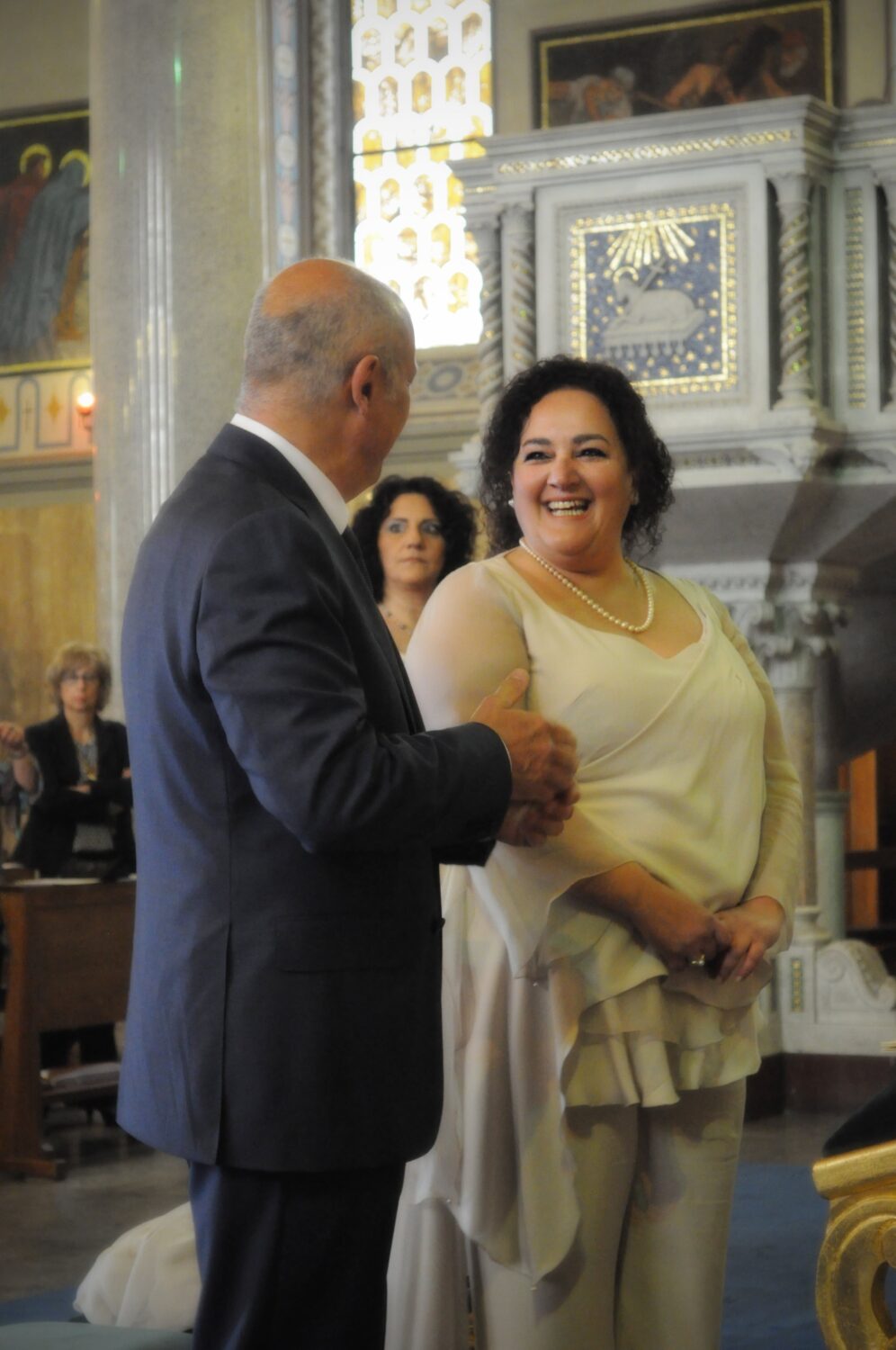 L’incontro con Sara è stato amore a prima vista, almeno da parte mia, sono stata una sposa un po’ particolare, grande di età e di taglia. Mi ha capito ed assecondato nel mio desiderio di un abito pantalone. Mi ha accompagnato durante tutto il percorso dallo scegliere il tessuto alla vestizione il giorno del matrimonio. Sara è in gamba, ha gusto, è una bella persona e merita tutto il successo.